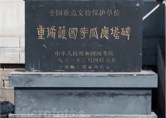 西夏碑,本名《涼州重修護(hù)國寺感通塔碑銘》,碑高26米,寬1米,厚03米。碑首呈半圓形,兩面正中用漢文和西夏文篆額,邊陰刻對稱的伎樂舞女,翩翩起舞,動作優(yōu)美,造型準(zhǔn)確;舞女胸和手腕上有飾物,赤露上身、雙腳,下著長裙,面形肌肉豐滿,吸收了敦煌飛天的藝術(shù)特點(diǎn)。碑身的兩邊呈殺角,邊上刻忍冬紋。碑一面為西夏文,共28行,滿行65字。西夏文是一種被人們遺忘了的語言文字,無法辨認(rèn),當(dāng)時被稱為“天書”。但碑的陽面為漢文,共26行,滿行76字。張澍先生見碑陽文末尾有“天祐民安五年歲次甲戌十五日戊建”落款,“天祐民安”為西夏年號,遂判定此碑為西夏碑文,因此,人們以后稱之為西夏碑。1961年就被國務(wù)院公布列為全國第一批重點(diǎn)文物保護(hù)單位。