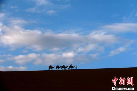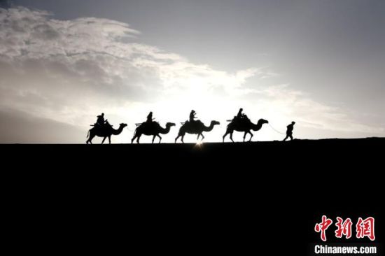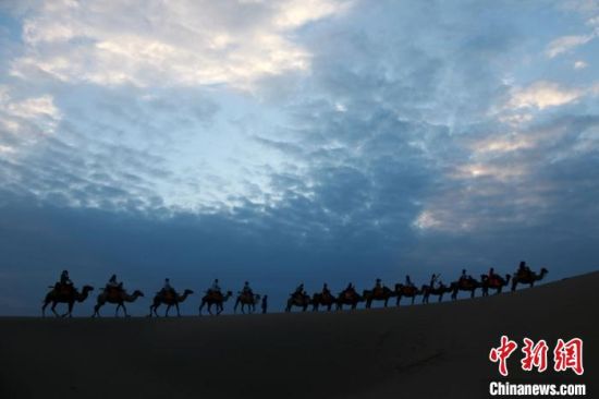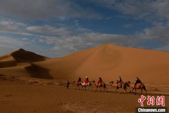 圖為敦煌大漠晨光引客“畫(huà)中游”?!垥粤?nbsp;攝