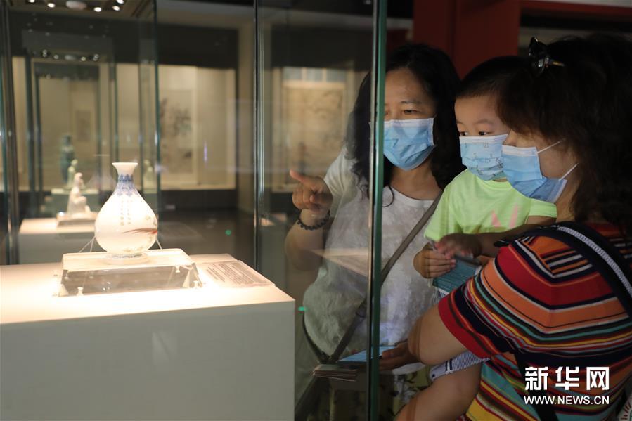 觀眾在天津博物館觀賞琺瑯彩玉壺春瓶(6月23日攝)。新華社記者 周潤健 攝