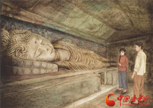 蘭州市民張女士忠愛敦煌藝術,家里收藏了很多關于敦煌的書籍、文創(chuàng)產品。每次逛書店,看到與敦煌相關的圖書,她都要仔細翻閱??吹健锻坎级鼗汀烦霭妫匾鉃榕畠嘿I了一本。“這本書的故事性很強,代入感也比較強,對青少年來說,是本很不錯的課外讀物。既能看到敦煌藝術、敦煌文化背后的故事,又能從幾個主人公身上體會到他們不同的精神內涵,特別感染人,很有正能量。”