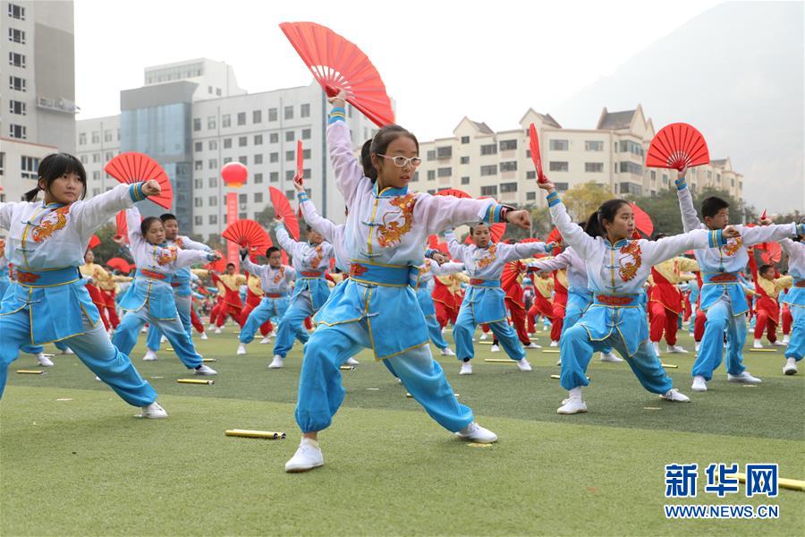11月4日,蘭州市寧興小學學生在活動現(xiàn)場表演武術操。新華社記者 張智敏 攝