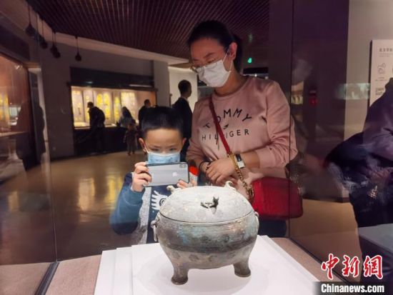 2月17日,甘肅省博物館迎來春節(jié)7天假期中的最后一波游客。圖為當?shù)孛癖娫谡箯d參觀。 張婧 攝