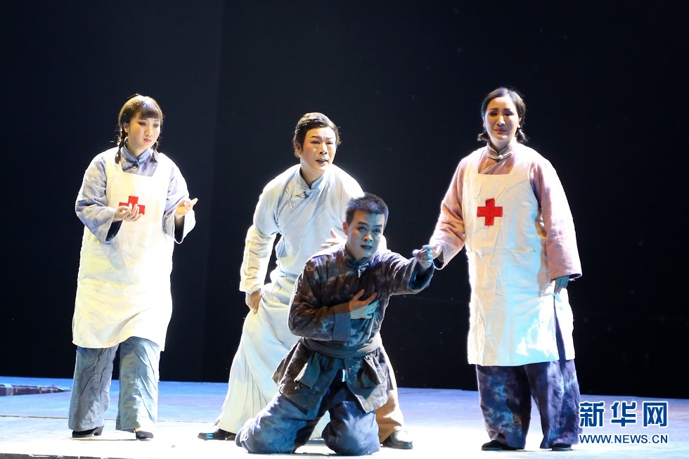 5月30日晚,大型秦腔現(xiàn)代戲《肝膽祁連》在蘭州音樂廳精彩上演?!陡文懫钸B》以真實的歷史故事改編,講述了愛國民主人士高金城營救紅西路軍戰(zhàn)士的感人故事。新華網(wǎng)發(fā)(王晶晶 攝)