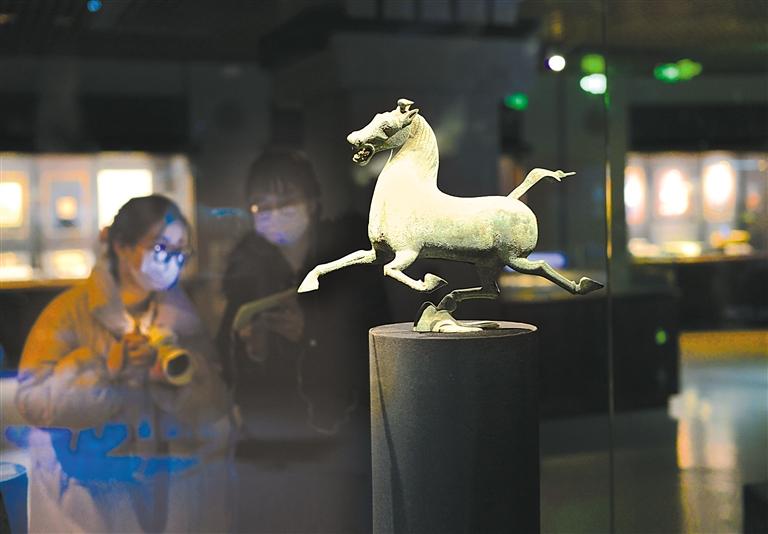這是觀眾在甘肅省博物館銅奔馬等展區(qū)參觀。 奔流新聞·蘭州晨報記者 裴強 攝
