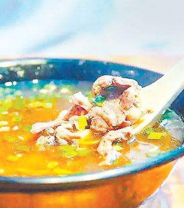 東門(mén)巷、喇家巷的牛雜割也上演著與肉酒一樣的故事,冬日里的牛雜割鋪?zhàn)涌偸切v騰的,在雜割湯翻滾的撲鼻中,一碗又一碗的雜割端上桌了。蒜苗與芫荽沫作為菜頭,讓一碗牛雜割青綠且香味撲鼻,拿了筷子,手心里一抹,而后咽一下口水,吸溜一口湯,目光跟著筷子在碗里攪動(dòng),留意牛舌多了一塊還是蹄筋少了,先巡察一番,然后咬一口白餅,喝口湯,幾口之后才吃雜割。