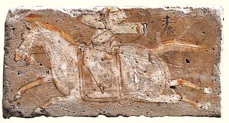 李廣射虎彩繪畫像磚/西晉 敦煌市博物館藏(本版圖片由甘肅省博物館提供)