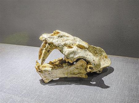 劍齒虎頭骨化石/晚中新世-更新世末 白銀市博物館藏