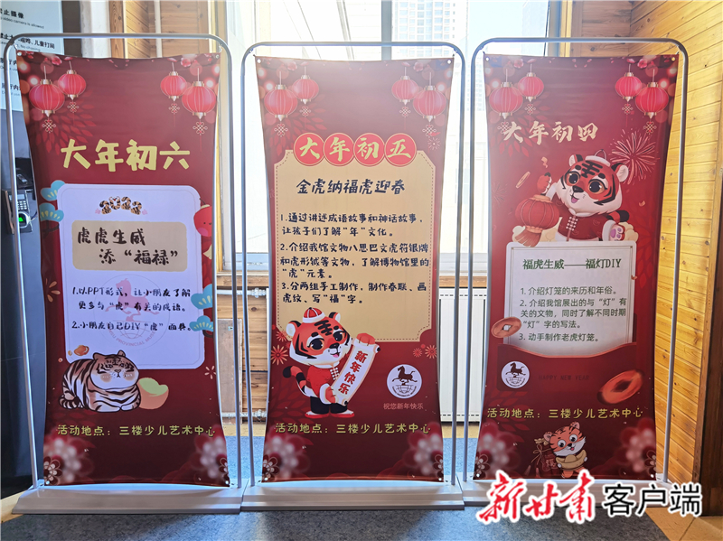 “后續(xù),還有大年初三的‘靈虎送福——虎紙漿畫DIY ’活動、大年初四的‘?;⑸?mdash;—福燈DIY ’活動、大年初五的‘金虎納?;⒂?rsquo;活動、大年初六的‘虎虎生威添‘福祿’活動’。”省博物館社會教育部主任盧冬介紹,每場活動面向約30名小朋友開展,經(jīng)過前期策劃準備,除了省博物館社教部的10余名工作人員,給孩子們普及有關(guān)虎和北京冬奧會的知識,還有來自西北師范大學、蘭州二十七中等校的學生志愿者,指導輔助孩子們玩游戲、做手工。