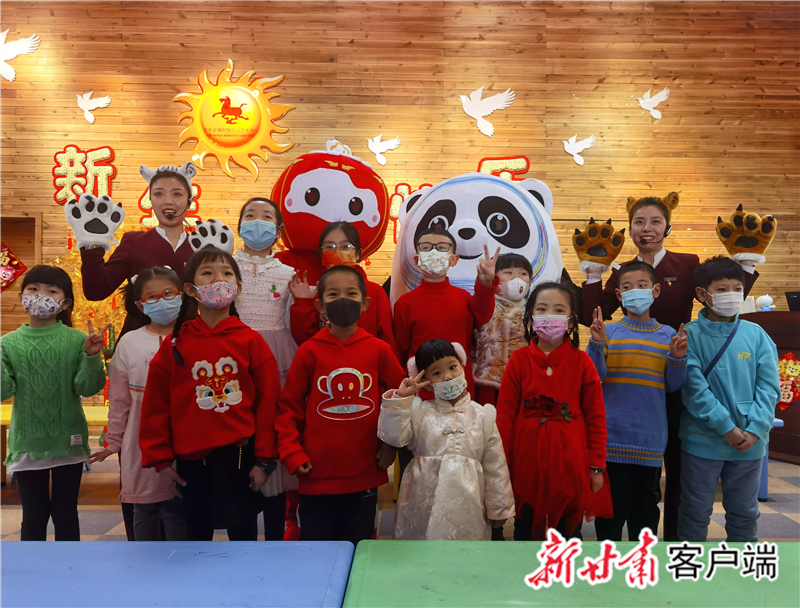 小朋友們與冰墩墩、雪容融合影。