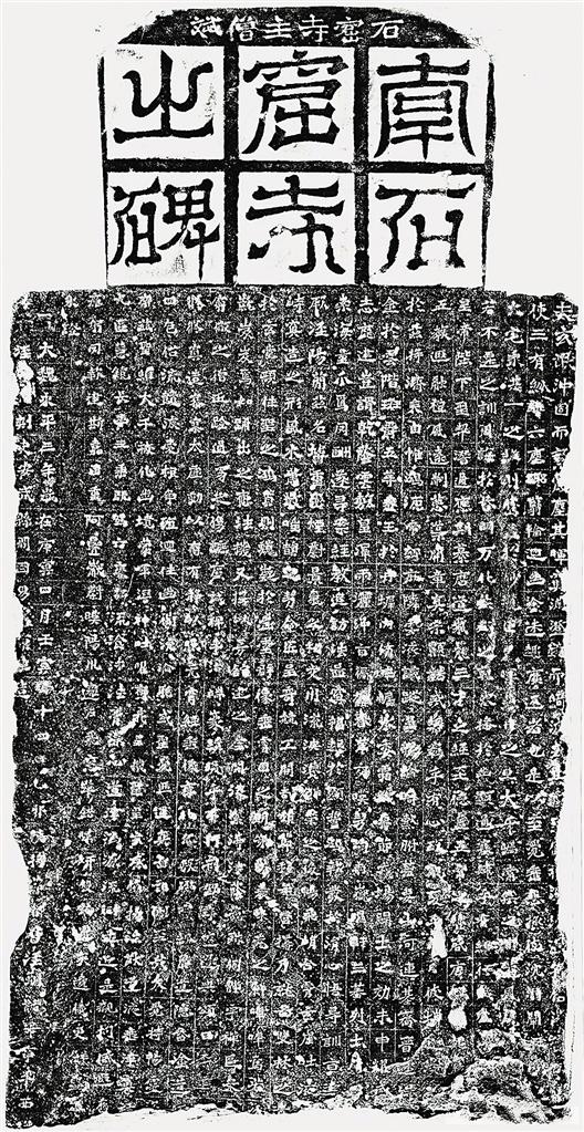 “南石窟寺之碑”雖錯失了清代金石研究巔峰時期的學(xué)術(shù)重視,但能幸存并獲重新重視仍不失為一件幸事。細(xì)審其有著個性鮮明的藝術(shù)魅力,點畫用筆“豐厚凝重,方折峻利,充滿了生命力和剛毅感,富有雄健的魏碑特點”。結(jié)字取勢匠心獨具,字字透過鐫刻者的刀鋒流露出書寫者高超的筆墨駕馭能力。羅振玉謂此碑“從分隸出,頗似《中岳廟碑》”,其章法布局有著明顯的漢碑意味。“南石窟寺之碑”通篇字形大小參差變化跌宕多姿,整體風(fēng)格和諧完滿。