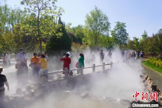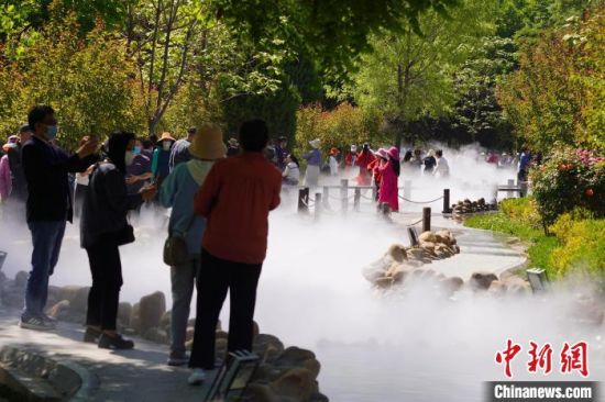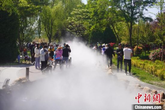 5月16日,甘肅蘭州,寓言故事園化身“瑤池”仙境美景,吸引不少市民前來(lái)觀(guān)賞、拍照?!【琶赖┰觥z