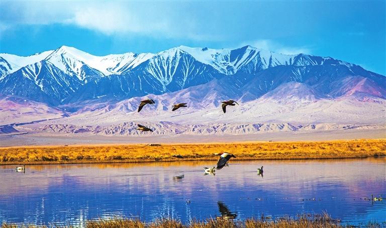 肅州區(qū)銀達(dá)鎮(zhèn)六分西湖濕地。
