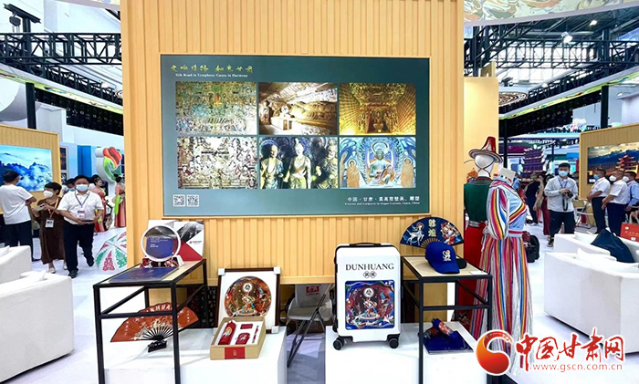 組團(tuán)參展的蘭州文化旅游企業(yè)攜帶了“交響絲路·如意甘肅”彩車模型、《敦煌傳奇》動漫劇系列文創(chuàng)產(chǎn)品、甘肅精品旅游線路宣傳彩頁等1000件(套)豐富展品亮相2022中國—東盟博覽會旅游展甘肅館。
