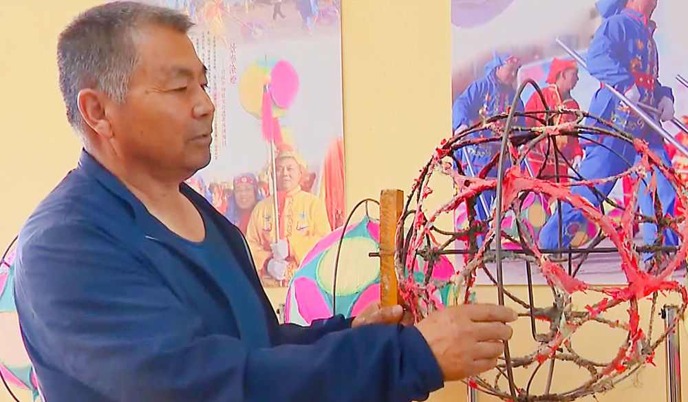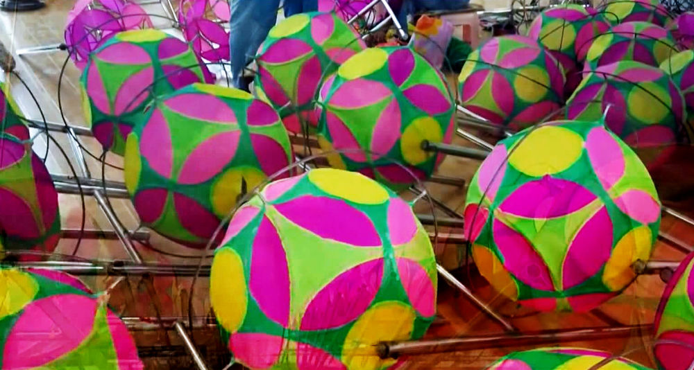 張安邦今年65歲,自其太祖輩起,代代都是技藝嫻熟的滾燈人,到他手里已經(jīng)是第三代了。明清時的滾燈,燈架、燈盤、轉軸都是木制的,花燈是用竹條或柳條編織,解放前改成了羅圈骨架,而現(xiàn)在經(jīng)過他改良的景泰滾燈,則是用高碳鋼絲制作而成。