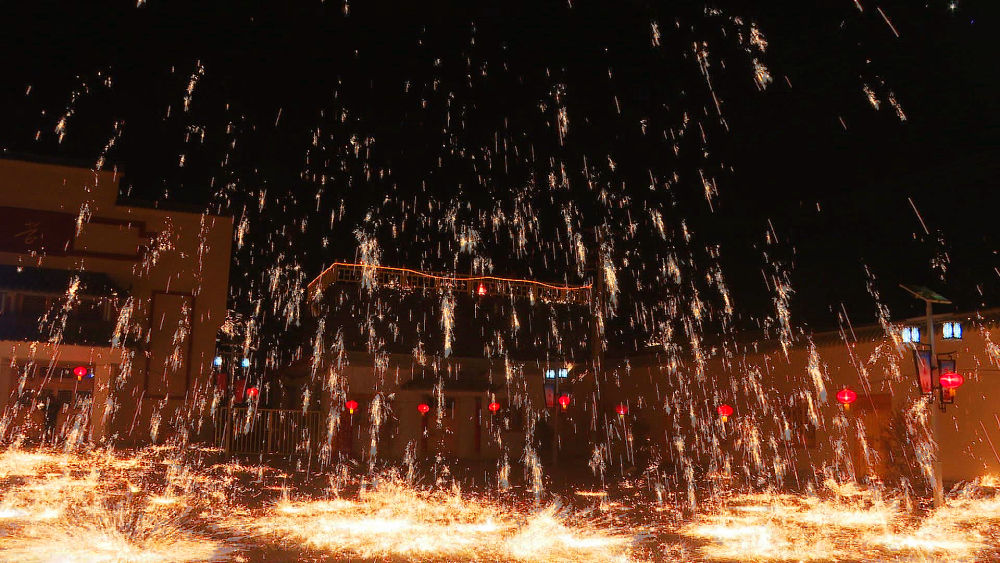 “打鐵花”是流傳于景泰縣的傳統(tǒng)習俗之一,源于明代中晚期。明萬歷年間,景泰地境為蒙古韃靼部落占據(jù),萬歷二十七年,為了驅逐韃靼,于賀蘭山以西構筑了黃河索橋至大靖泗水堡的邊防,屯軍駐守。因軍隊制造兵器和修補農(nóng)具之需,許多鐵匠被充軍戍邊,張?zhí)┤宓南茸?,鐵匠出身的張鐵蛋自此舉家隨軍由山西到了蘆塘堡(今蘆陽鎮(zhèn)政府所在地),他充分運用自己的生活經(jīng)驗和所掌握的技藝,摸索出了打鐵花的基本工序。