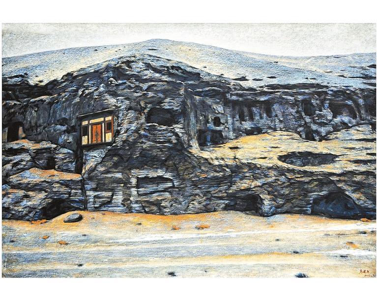 房建平多年來扎根甘肅、扎根西北,深受敦煌藝術(shù)的影響,并由此產(chǎn)生了自己獨(dú)到的見解。他以當(dāng)下的視角去審視千年之前的敦煌壁畫,思考古代工匠創(chuàng)作的技法運(yùn)用以及時(shí)代所賦予工匠們的精神面貌。他在深入研究敦煌壁畫的過程中,被那豐富的色彩所吸引,被那厚重斑駁的肌理所嘆服,被那點(diǎn)線面的旋律所震撼。他孜孜不倦、廢寢忘食地學(xué)習(xí),吸收借鑒敦煌壁畫的元素,然而并非簡(jiǎn)單地臨摹、復(fù)制與再現(xiàn),而是于審視、思索之后源源不斷地發(fā)現(xiàn)、感受、弘揚(yáng)。更為可貴的是,他竭力探尋敦煌莫高窟的精神內(nèi)涵,包括開放包容多元文化一體的精神、莫高窟守護(hù)人的工匠精神的共同凝聚。