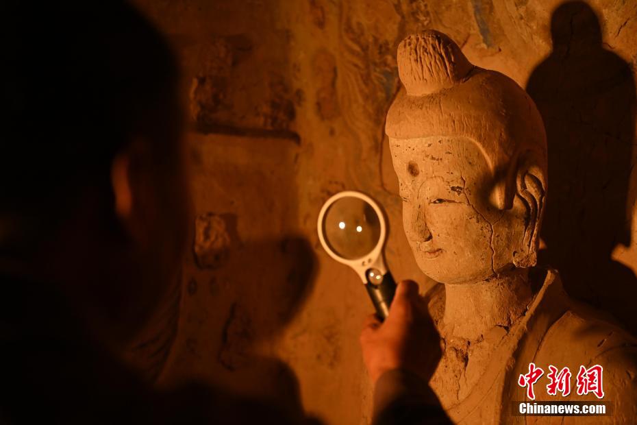 有時(shí)候看似簡單的佛像修復(fù)會(huì)遇到各類不同的文物病害,修復(fù)時(shí)間會(huì)長達(dá)三年之久,他也見證了文物修復(fù)技藝的變遷。隨著科技進(jìn)步文物修復(fù)手段也變得越來越先進(jìn),他認(rèn)為未來的文物保護(hù)工作一定會(huì)越來越好,年輕文保工作者們也一定會(huì)想盡更多辦法留住這座世界文化遺產(chǎn)。圖為8月25日,文物修復(fù)師牟常有正在仔細(xì)觀察佛像表面出現(xiàn)的病害問題。李亞龍 攝
