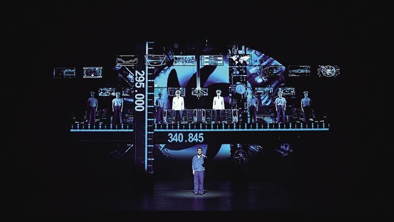 據(jù)了解,舞臺裝置上呈現(xiàn)出軍事工業(yè)的莊重感,如歌如畫般營造出了核潛艇極限下潛步步驚心的緊張氛圍,同時也讓觀眾近距離地走近了英模的成長歷程與內心世界。