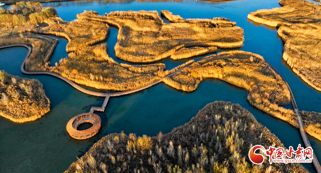 11月25日,在夕陽映照下的甘肅張掖黑河濕地國家級自然保護區(qū),金色繁茂的蘆葦長滿水面,碧水環(huán)繞其中,清風(fēng)吹過,綠波蕩漾,成為市民和游客心曠神怡的好去處。
