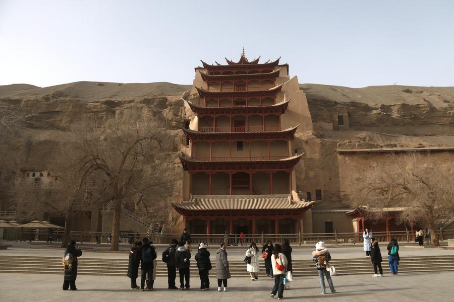 1月14日,游客在甘肅敦煌莫高窟游覽。新華社發(fā)(張曉亮攝)