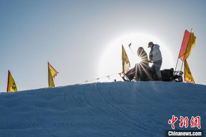 2024年1月7日,游人在敦煌文博冰雪場(chǎng)體驗(yàn)雪地游玩項(xiàng)目。王斌銀 攝