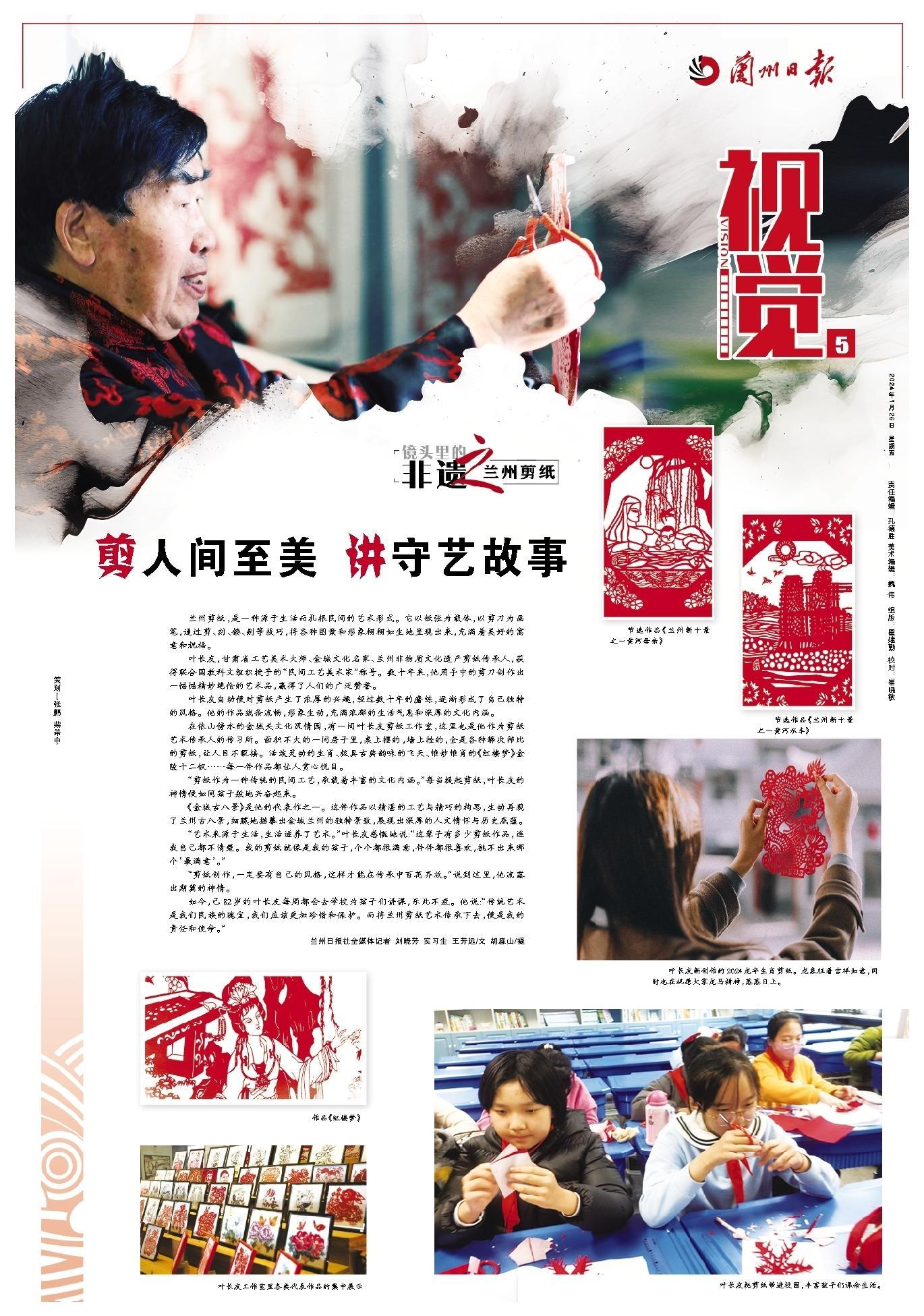 如今,已82歲的葉長(zhǎng)友每周都會(huì)去學(xué)校為孩子們講課,樂(lè)此不疲。他說(shuō):“傳統(tǒng)藝術(shù)是我們民族的瑰寶,我們應(yīng)該更加珍惜和保護(hù)。而將蘭州剪紙藝術(shù)傳承下去,便是我的責(zé)任和使命。”
