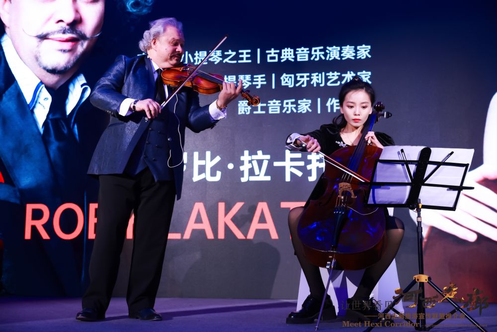 活動現(xiàn)場,張掖、武威、金昌、酒泉、嘉峪關(guān)5市分別展示當?shù)氐奈幕糜钨Y源,呈現(xiàn)地方特色節(jié)目,并與甘肅省簡牘博物館共同發(fā)布“通關(guān)簡牘”,發(fā)出邀請“讓世界走進河西走廊”。結(jié)合了甘肅特色的各類文藝表演、世界知名小提琴大師羅比·拉卡托斯以及羅馬尼亞藝術(shù)家們帶來的精彩節(jié)目也在活動現(xiàn)場演出。