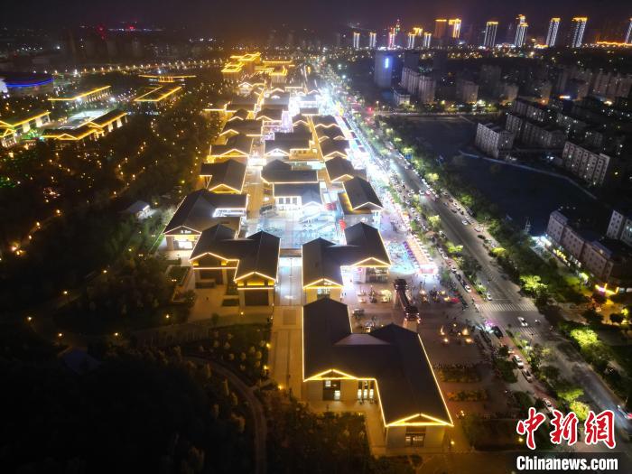 圖為明清街夜市燈光點(diǎn)亮具有武威文化元素的“銅奔馬”彩燈。(無人機(jī)照片)  戴文昌 攝