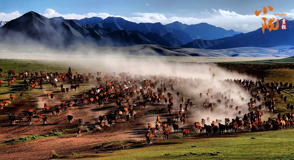 這里有比塞罕壩更壯觀的萬馬奔騰。藍天白云下,一匹匹雄健的駿馬在疾風中奔馳,從一望無際的草場上呼嘯而過,長鬃飛揚,浩浩蕩蕩。