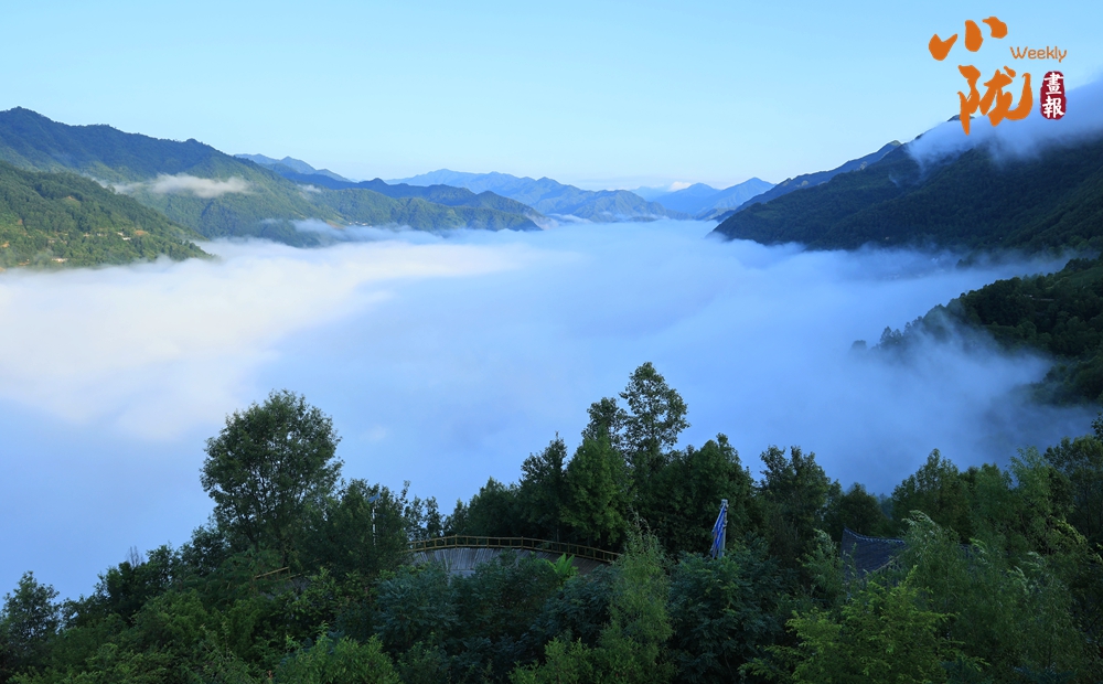 縹緲而柔軟的白霧,彌漫在山川河谷,覆蓋著層疊起伏的翠峰,恍如白浪滔滔的大海之上呈現(xiàn)出座座綠色島嶼。