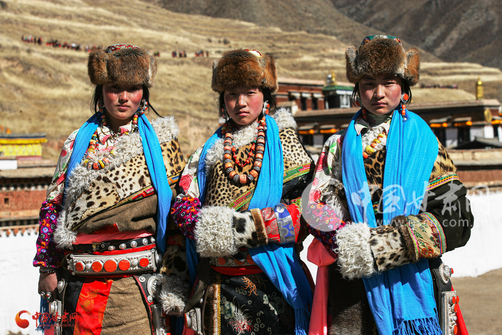 碌曲身著民族服飾的年輕藏民