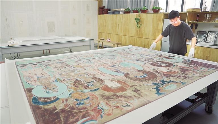 “我來這里7年了,感覺也是一瞬間的事。”畢業(yè)于吉林藝術(shù)學(xué)院裝裱專業(yè)的徐喆,2017年入職敦煌研究院,“第一次來敦煌,被這里的壁畫所吸引所震撼,能夠在這里當一名裱畫師,也是很幸運的。”