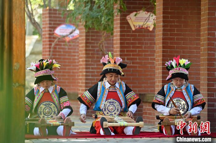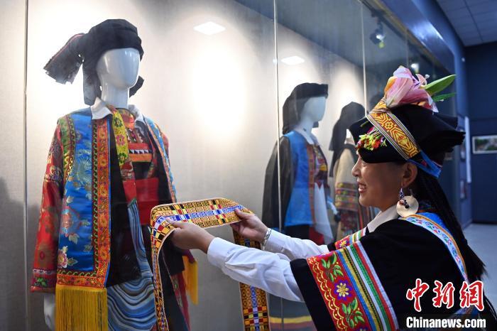9月26日,甘肅省甘南藏族自治州舟曲縣,當(dāng)?shù)夭刈鍕D女展示錦帶佩戴方式。錦帶是舟曲藏族婦女用以束腰、扎靴、攏發(fā)乃至點(diǎn)綴服飾的花帶子,艷麗多彩、圖案優(yōu)美。每逢吉慶節(jié)日,藏族婦女穿戴的華麗盛裝就需要少則五、六條,多則十幾條寬窄長短相宜的錦帶來裝飾。據(jù)介紹,藏族織錦帶技藝歷史悠久,一千多年以前,古羌族和吐蕃已有了較發(fā)達(dá)的手工編織技術(shù),在艱難的生活條件下對服飾等生活用品除實(shí)用功能之外,已經(jīng)有了強(qiáng)烈的審美追求,是研究舟曲羌藏文化的“活化石”。中新社記者 九美旦增 攝