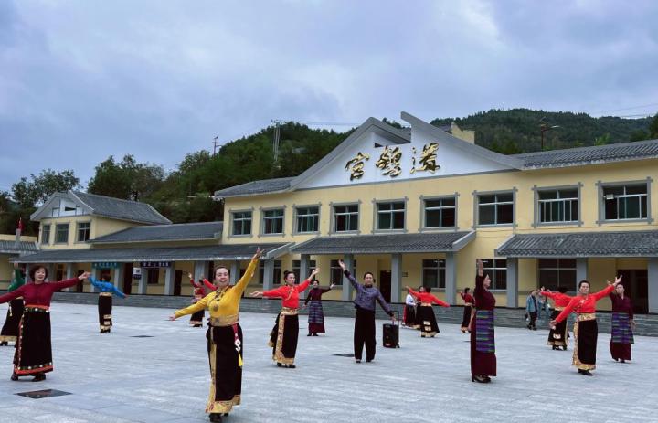在官鵝溝大景區(qū),伴隨著當(dāng)?shù)卦瓌?chuàng)旅游歌曲《娥嫚》的旋律,游客們和身著民族服飾的表演者在山水之間載歌載舞,現(xiàn)場不時(shí)響起陣陣掌聲和歡呼聲。“如詩如畫的美景,獨(dú)具魅力的民族文化,歌舞聲把節(jié)日氣氛拉滿。”周敏說。