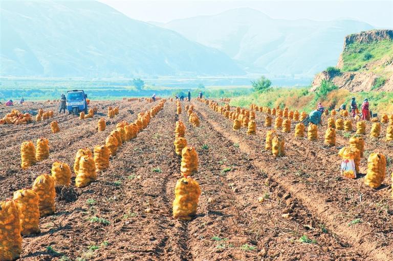 定西市安定區(qū)魯家溝鎮(zhèn)村民在分揀、裝運(yùn)收獲的馬鈴薯。新甘肅·甘肅日?qǐng)?bào)通訊員 胡耀偉