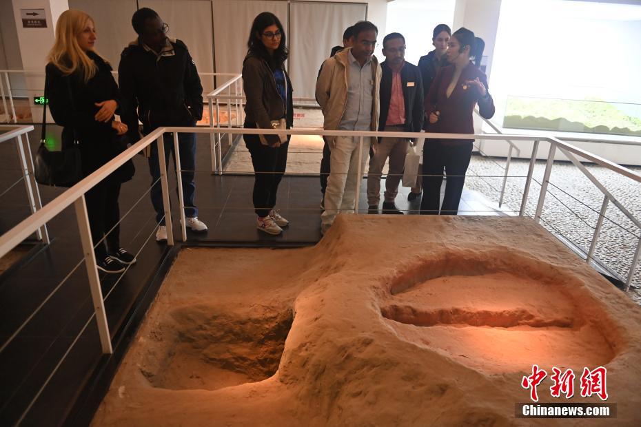 10月22日,2024青年漢學(xué)家研修計(jì)劃甘肅班團(tuán)隊(duì)22個(gè)國(guó)家的青年漢學(xué)家,走進(jìn)甘肅省天水市秦安縣大地灣遺址參觀并進(jìn)行專題研修。大地灣遺址是新石器時(shí)代大型聚落遺址,出土了中國(guó)乃至世界上最早的彩陶文化、最早的文字符號(hào)、種植生產(chǎn)了中國(guó)第一批糧食品種黍、出現(xiàn)了最早的宮殿式建筑、發(fā)明了世界最早的水泥地面、創(chuàng)造了最早的繪畫作品——F411地畫。圖為22國(guó)青年漢學(xué)家參觀大地灣博物館。中新社記者 李亞龍 攝