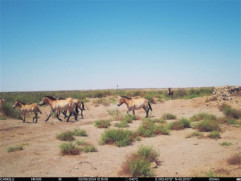 近日,甘肅敦煌西湖國家級自然保護(hù)區(qū)工作人員在保護(hù)區(qū)監(jiān)測數(shù)據(jù)中發(fā)現(xiàn)了令人驚嘆的一幕:普氏野馬與野駱駝同框。