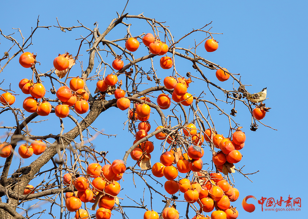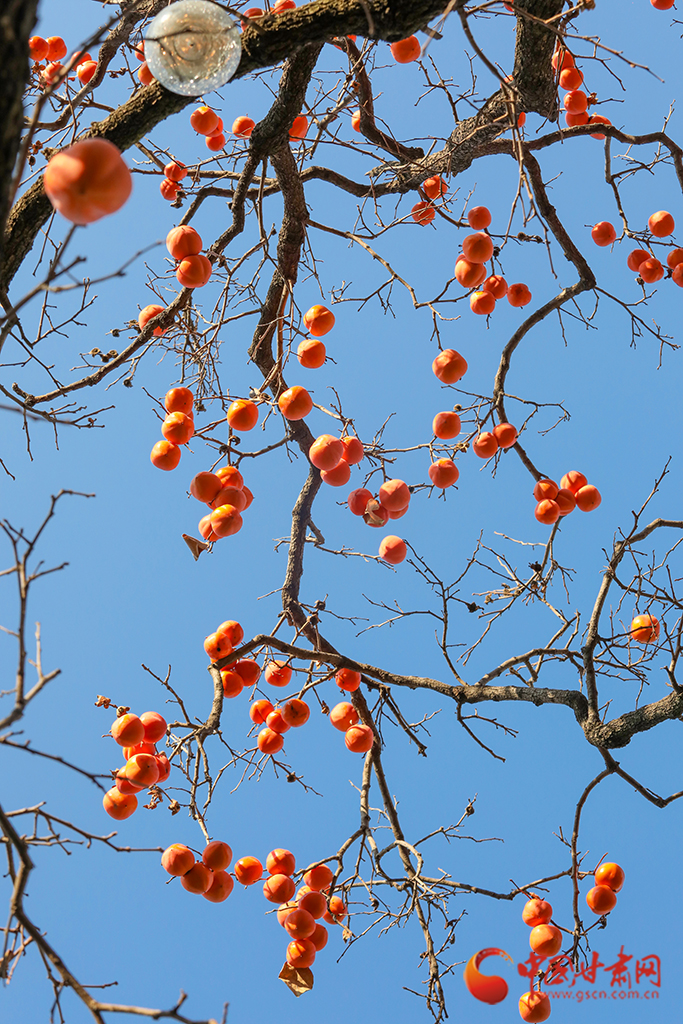 秋去冬來,萬物沉寂。在平涼崇信,柿子樹上掛滿了果實,又是一年柿子紅。