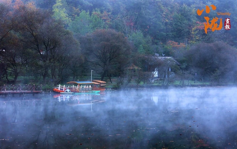 漫山染橙黃,彩池映秋色。天鵝湖湖波瀲滟,群山倒映,碧霞煙柳,移步換景,似乎走進(jìn)了蘇州園林。
