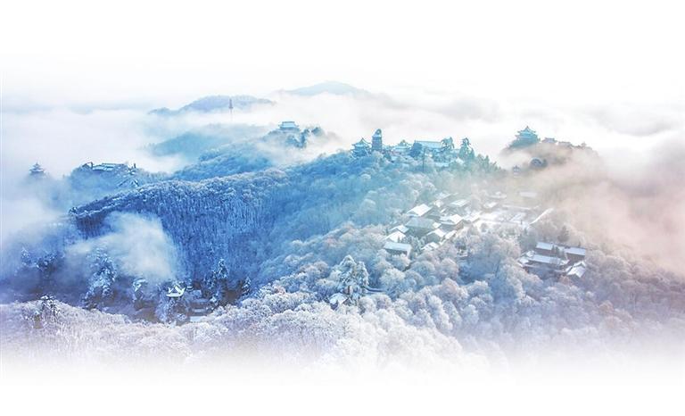 越往前走,感覺如入仙境。入“朝天門”,踏378階“上天梯”,直趨皇城——崆峒最高峰和最大的古建筑群。一路上,或陡峭絕壁,或曲徑通幽,紛紛揚(yáng)揚(yáng)的雪花,似天庭散落的瓊花,輕輕地為崆峒山披上了一層潔白的羽衣,將這方山水點(diǎn)染成如夢似幻的仙境。