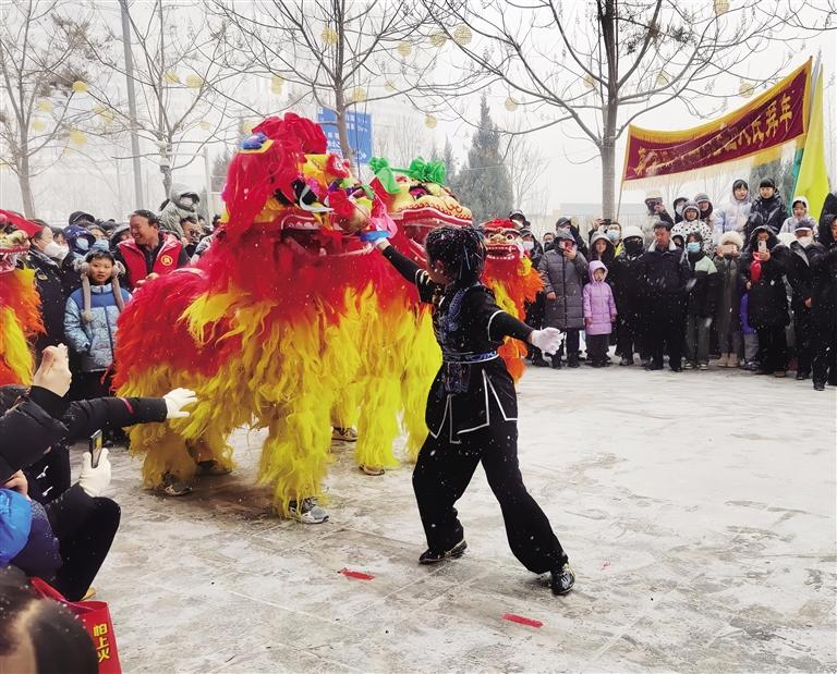 柴宗峰的獅舞技藝不僅來自父親的傳授和老人們的悉心指導,他還通過網絡視頻學習其他地方的表演,不斷吸收新的動作和技巧。他說:“我在獅舞動作中加入了南派獅舞的‘抖毛發(fā)’‘撓耳朵’‘舔腿’等動作,讓表演更加豐富靈動。”