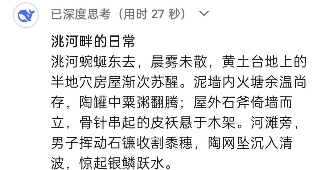 DeepSeek:馬家窯文化作為人類文明長(zhǎng)河中一顆璀璨的明珠,因最早發(fā)現(xiàn)于甘肅省臨洮縣馬家窯村而得名,它被認(rèn)為是仰韶文化向西發(fā)展的延續(xù),它展現(xiàn)了黃河上游先民的創(chuàng)造力,更是史前人類與自然對(duì)話、與社會(huì)共生的見證。