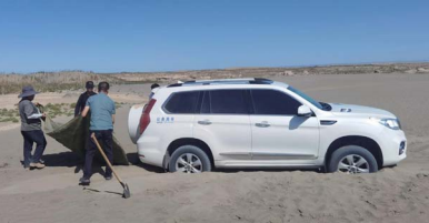 車子終于在陷入沙地3小時后脫離困境??疾靾F在羊井子鄉(xiāng)用過午餐后返回酒泉。