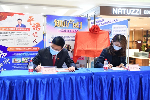 城關(guān)區(qū)法院與居然之家萬(wàn)佳天水路店,就設(shè)立“知識(shí)產(chǎn)權(quán)司法保 護(hù)示范基地”及日常工作的詳細(xì)內(nèi)容簽訂備忘錄。記者 李洋 攝