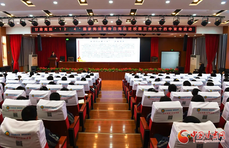 中國甘肅網(wǎng)12月4日訊(本網(wǎng)記者 李紅軍)12月4日是第七個(gè)“國家憲法日”。今天下午,甘肅省法院少年法庭的法官走進(jìn)蘭州市第六十四中學(xué),開展以“深入學(xué)習(xí)宣傳習(xí)近平法治思想、大力弘揚(yáng)憲法精神”為主題的憲法進(jìn)校園宣傳活動(dòng)。該校300余名師生代表在學(xué)術(shù)報(bào)告廳聆聽了宣講報(bào)告,兩名基層法院人民陪審員應(yīng)邀參加了活動(dòng)。