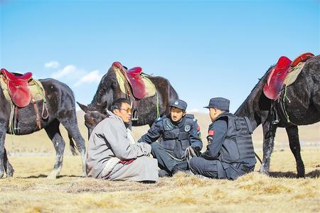 “當(dāng)時(shí)沒(méi)有固定辦公場(chǎng)所,騎著馬帶著帳篷、睡袋,背著干糧在10190平方公里的草原巡邏。”現(xiàn)任瑪曲縣公安局政委的宋偉是草原騎警大隊(duì)第一任大隊(duì)長(zhǎng)。當(dāng)時(shí),他帶領(lǐng)隊(duì)員們白天在各個(gè)放牧點(diǎn)之間巡邏,晚上扎帳篷休息,“也正是因?yàn)檫@樣,我們很快和牧民們熟絡(luò)了起來(lái)。”