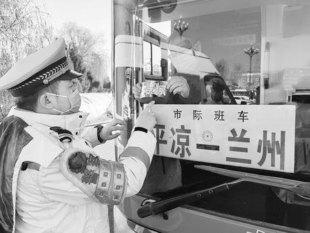 1月21日,蘭州市公安局交警支隊柳溝河高速公路大隊民警向參與春運車輛張貼平安標(biāo)語。新甘肅·甘肅法制報記者王輝攝