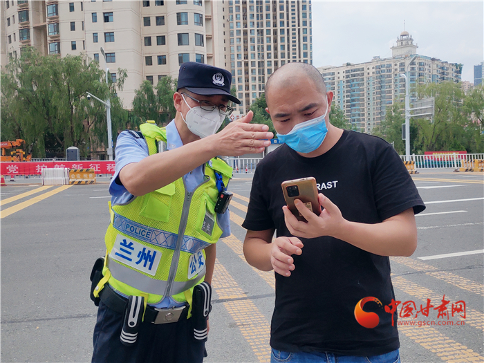 7月13日上午,蘭州市公安局交通治安分局天水北路交通治安派出所教導(dǎo)員杜曉華執(zhí)勤,他的身后就是蘭州。