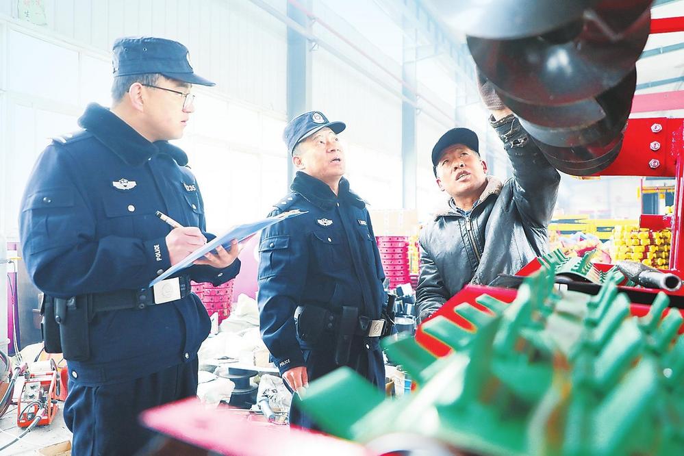 民警檢查農(nóng)機(jī)安全情況。2月20日,定西市公安局安定分局民輔警深入農(nóng)機(jī)制造、銷(xiāo)售網(wǎng)點(diǎn),開(kāi)展農(nóng)機(jī)安全隱患排查治理工作,助力春耕生產(chǎn)。新甘肅·甘肅法治報(bào)通訊員楊永剛攝