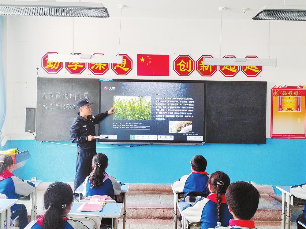 民警正給學(xué)生講解“防范青少年藥物濫用”等禁毒知識(shí)。近日,臨潭縣公安局術(shù)布派出所民輔警走進(jìn)轄區(qū)學(xué)校,開展以“防范青少年藥物濫用”為主題的禁毒宣傳活動(dòng)。 新甘肅·甘肅法治報(bào)記者金凡裕攝